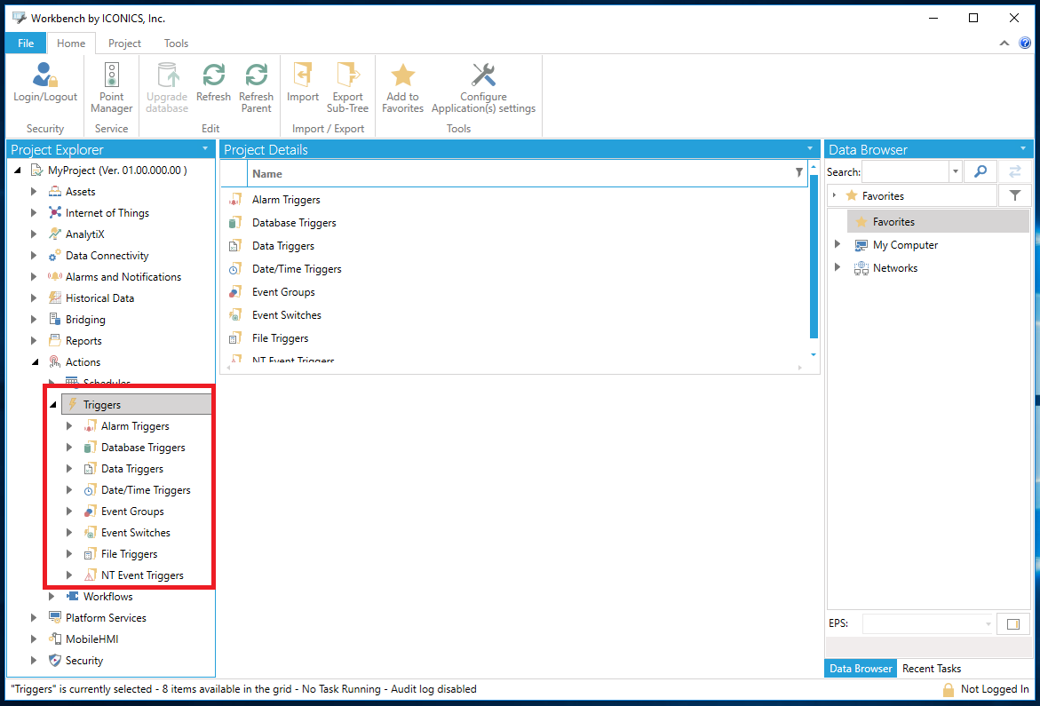 Triggers can be used to set actions that can invoke operations within other ICONICS products.