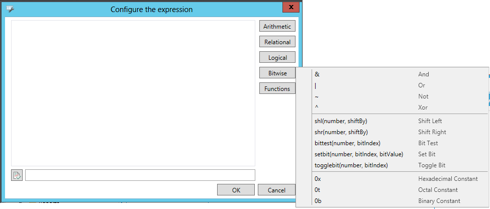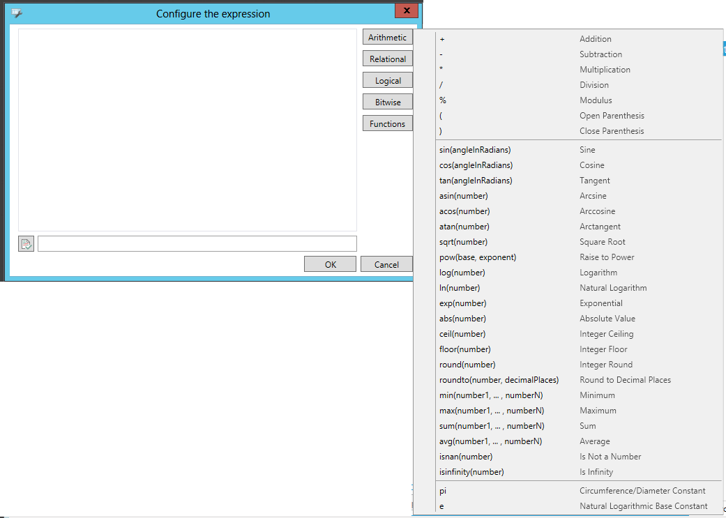 Expression Editor ('Configure the expression' window)