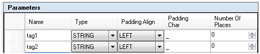 On the Expression Properties tab add two Parameters called tag1 and tag2.