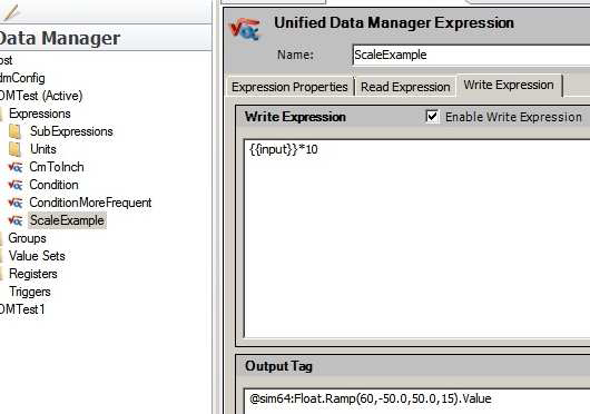 One of the most common uses of global expressions is scaling and conversion of values. The steps below describe how to create an expression that will scale an OPC tag value by 10.