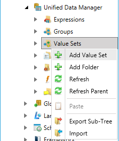 Right-click the Value Sets node in the navigation tree and select Add Value Set, as shown in the figure below.