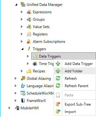 Right-click the Data Triggers node in the navigation tree and select Add Folder, as shown in the figure below.