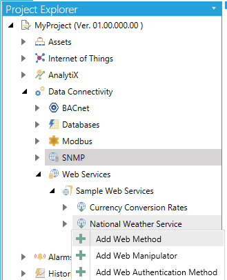 Right-click on a sub-branch beneath a Web Service and select "Add Web Method" as shown below.