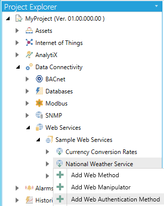 - Right-click on a sub-branch beneath a Web Service and select "Add Web Authentication Method" as shown below.