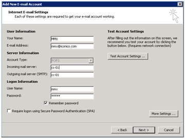 - You can give the incoming and outgoing mail servers your computer name and click on “Next”.