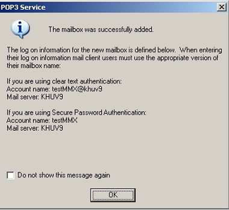 Figure 4 - New Mailbox in POP3 Service