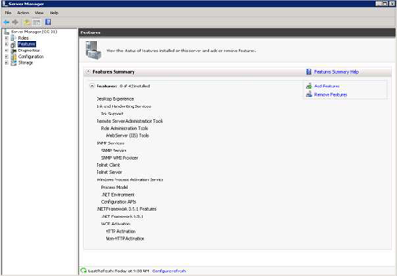 - Once the Programs and Features dialog opens, click on the “Turn Windows Feature On/Off” option on the left. This opens the “Server Manager” window.