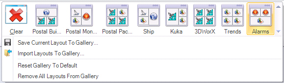 The default Layout Gallery is the one that you see when you install the Workbench Classic. The icons in the Layout Gallery are essentially picture buttons; they link to the files in GenDemo that ICONICS uses as examples. If you open a default layout and make changes to the underlying files, then you have changed the default. Should you select the Reset Gallery to Default after you change the files then the buttons will load your display with the files containing their new content.