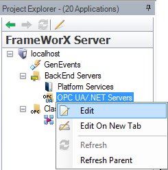 - Right-click on OPC UA/.NET Servers then select Edit.