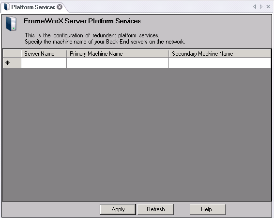 Armed with the information described above, you must configure the platform services for each FrameWorX Server: