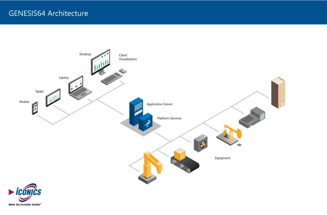 ICONICS GENESIS64 is a powerful, 64-bit, Web-enabled, OPC HMI/SCADA suite. GENESIS64 takes full advantage of the convergence of 64-bit-based computing machinery, the latest Microsoft operating systems, and the growing customer demand for engaging three-dimensional graphic visualization of business processes.