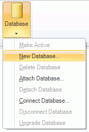 Database button in the Home ribbon near the top of the Workbench64 screen and select "New Database". Other menu options using this method include "Make Active", "Delete Database", "Attach Database", "Detach Database", "Connect Database", "Disconnect Database" or "Upgrade Database"