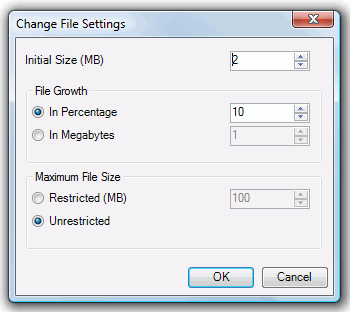 Database File Size Settings