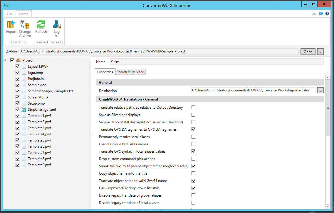 The Auto Configuration Shell/GENESIS64 ConverterWorX Utility, the 64-bit 'Import' side of the conversion process, is installed as part of the GENESIS64 V10.8 installation (C:\Program Files\ICONICS\GENESIS64\Components\FwxImportExportApp.exe). Its essential functions are to: