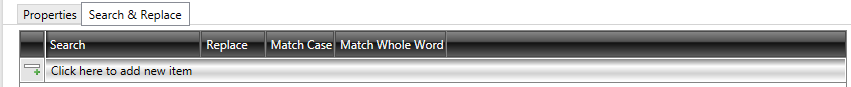 The Search & Replace Tab in the GENESIS64 ConverterWorX Utility allows you to make text substitutions within your source 32-bit project. This can be useful for product or organizational name changes, etc. Once you click on the Search & Replace Tab, you'll see the row marked 'Click here to add new item'.