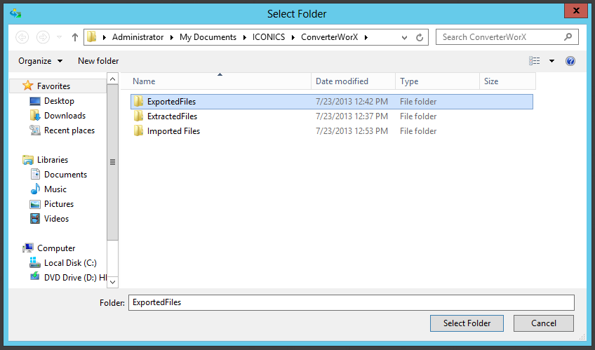 Once you have selected your Exported Files folder, you'll notice that the application's title bar is now listed as 'ConverterWorX Importer'. Also, the 'Save As' button within the File section of the File ribbon will now be active. If you click on it, you'll be able to save this project as a .cwxi file, which, after saving in your selected location, can be retrieved through the utility via the Open button.