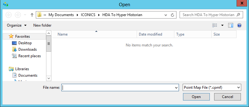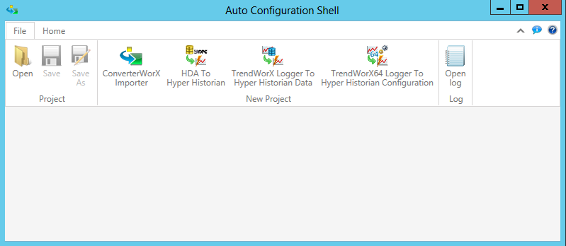When you first launch the utility, you'll notice that the application's title bar is listed as 'Auto Configuration Shell', as shown above. From the File ribbon, in the New Project section, click on the HDA to Hyper Historian button. This opens a file explorer window, as shown below, which allows you to navigate to where you have stored your existing Point Map File (*.cpmf).