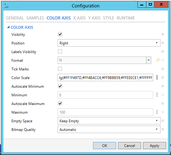 Configure - Clicking this button opens the separate Configuration window, allowing you to change the settings for the currently selected Heatmap control.
