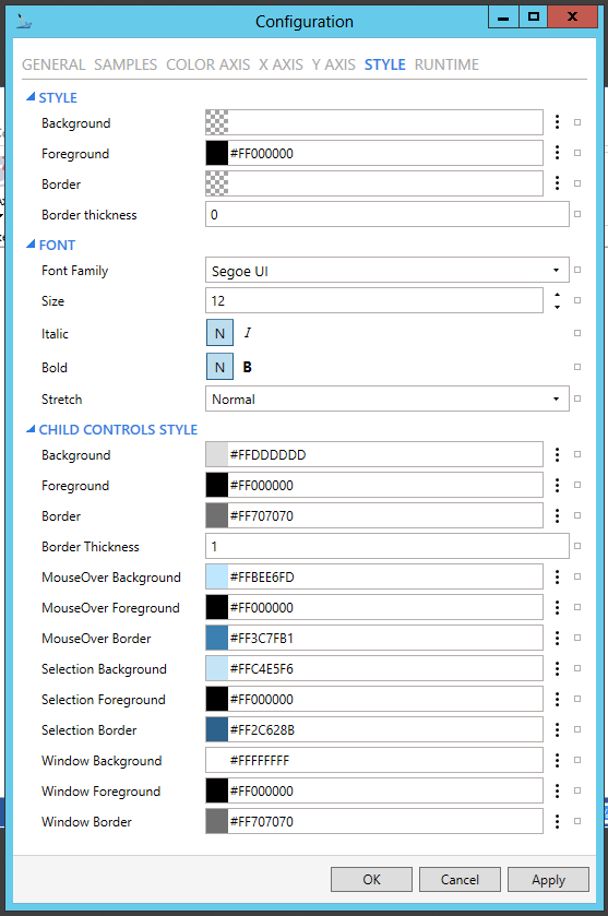 Selection Foreground - Foreground brush of selected child controls. Enter a hex color code in the text entry field or click on the