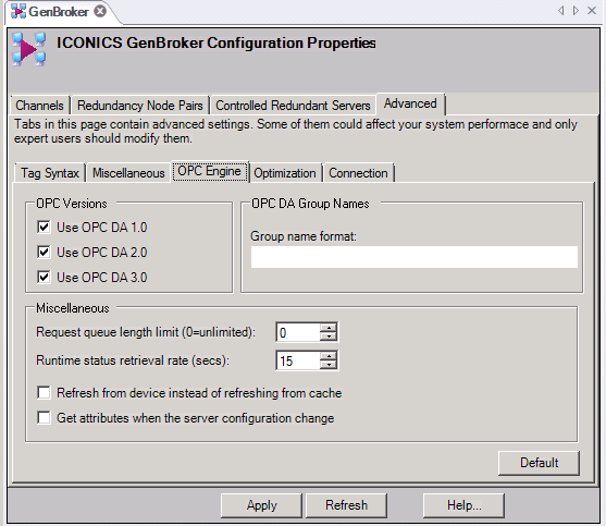 OPC Engine tab - Refer to GenBroker OPC Engine Tab, below