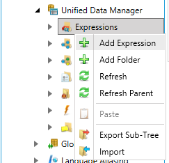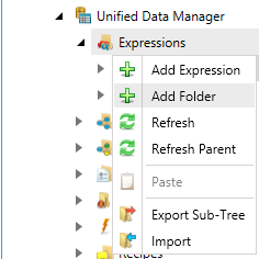 In the Unified Data Manager, right-click the node in the Expressions node and select Add Folder.