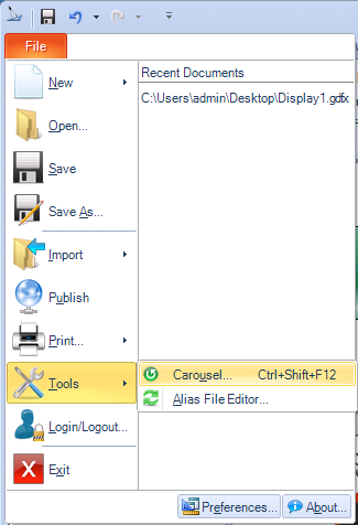 Development use. Although, the Carousel is useful tool for displaying information in runtime mode, in GraphWorX is can also be used for easy access to development files. For example, you might create a playlist of the display files you need easy access to during development. Normally, you can open recently-used files easily from the View menu in configuration mode, but if you need easy access to displays that you don't open frequently, the Carousel could provide that access to you. You can open the Carousel in configuration mode and keep it open as long you need to.