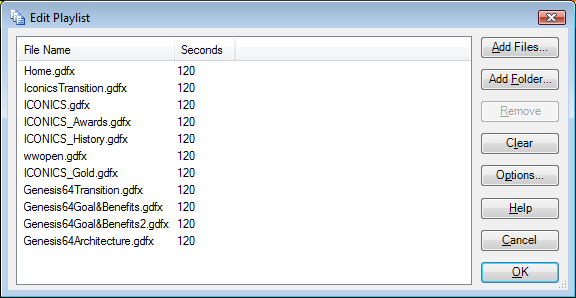 For additional help using the Edit Playlist dialog box, refer to Edit File List Dialog Box.