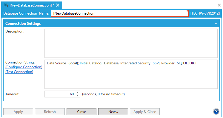 Timeout - Enter a time, in seconds, for a timeout in connecting to the entered database. '0' means no timeout.