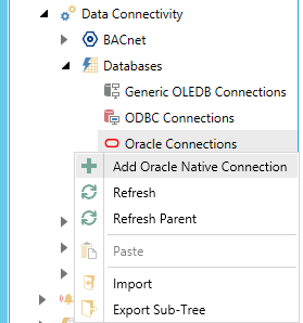 Right-click the Oracle Connections node then click on Add Oracle Native Connection, as shown below.