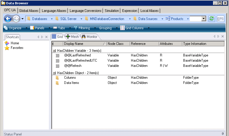 - The Data Browser screen opens. Browse to the process point. For example, you might select Home > Databases > SQL Server > Northwind > Data Sources > Products.