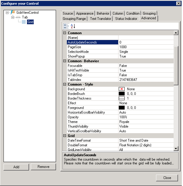Advanced Tab (GridWorX Viewer)