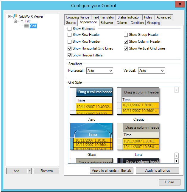 Appearance Tab (GridWorX Viewer)