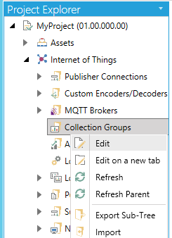 Right-click on the Collection Groups node, then select Edit from the pulldown menu, as shown below.