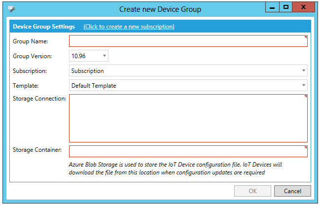 (Click to create a new subscription) -Click this link to open the Create a new IoT Subscription window.