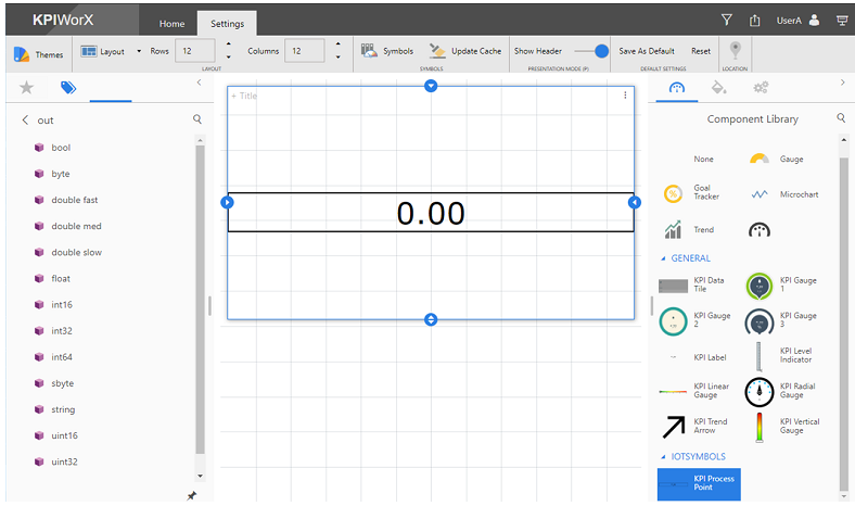 From the IoT Symbols section, drag a KPI Process Point onto the dashboard.