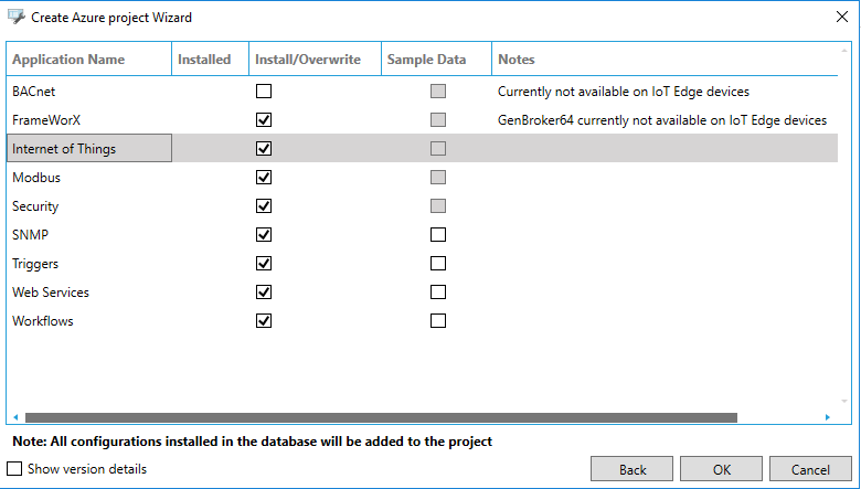 Check the Deploy checkbox for each ICONICS module you would like to add to your IoT device.