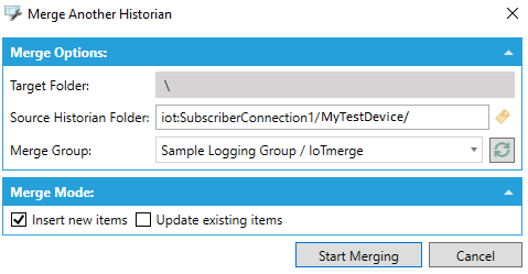 Note: The "Merge Another Historian" action will automatically generate tags in the Hyper Historian configuration.