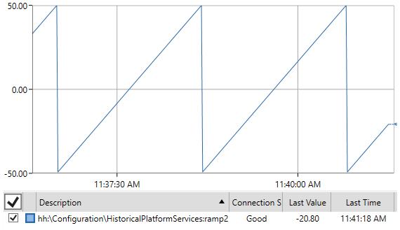 A task to add the tags will be automatically added. Once it is complete, you will see that the tags have automatically been added to the Hyper Historian configuration. To see the historical data, you can again use Data Explorer. Browse to the tags My Computer > Historical Data > Hyper Historian > Configuration and see a trend viewer populate with the buffered data.