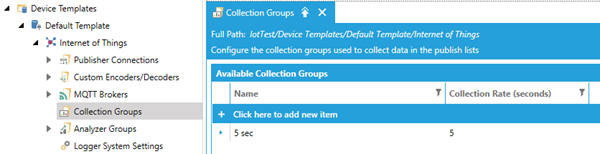 Add a new Collection Group to the list. This defines how often tags will be collected on the device. Apply your changes and close the form.