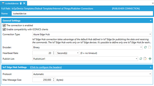 Edit your existing publisher connection, which should have a Connection Type of Azure Edge Hub.