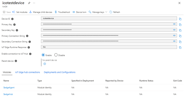 If you run sudo iotedge list on the device, you will see that the edgeAgent module is running.