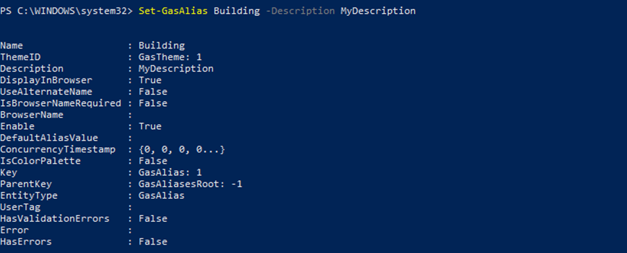 Set-GasAlias (Get-GasAlias Building) -Description MyDescription