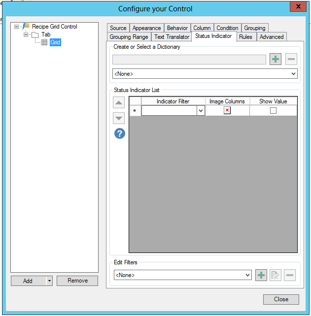 Status Indicator Tab in Grid Properties in Recipe Grid Control Configuration