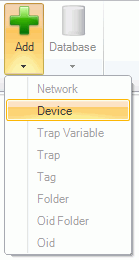 Right-click on a network folder within the SNMP tree control of the SNMP Connector and select Device from the pop-up menu, as shown in the figure below.