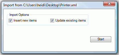 Update existing items. When the import file contains items that are in the configuration database, it updates them using the data from the import file. If you leave this check box empty, the import does not update existing items.