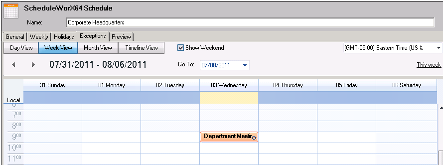 Click OK to accept the information and return to the schedule view. The Exception information you entered is now contained in your calendar.