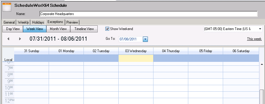 Exceptions Tab for Schedules (ScheduleWorX64)
