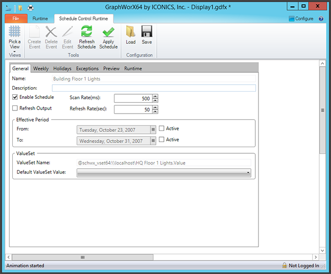 GraphWorX64 Display Containing a Schedule Control (from a ScheduleWorX View) in Runtime