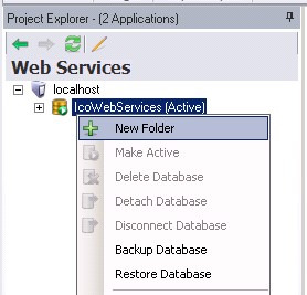 - Right-click on your selected database. In the shown example below, it's the IcoWebServices(Active) branch in the Project Explorer.