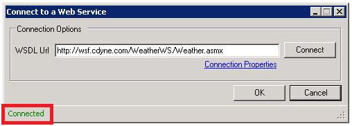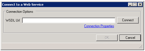 - You can now enter the WSDL (Web Services Description Language) URL in the space provided. You can also click on the "Connection Properties" link, which will open the following window.